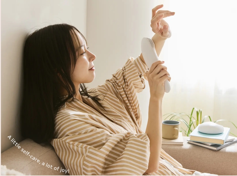 光美容器は大きく重いモデルもありますが、Lunaはコンパクトで持ちやすさを重視した設計です。握りやすい形状で、腕を動かしやすく、背面や脚の裏側も照射しやすい点も魅力です。
