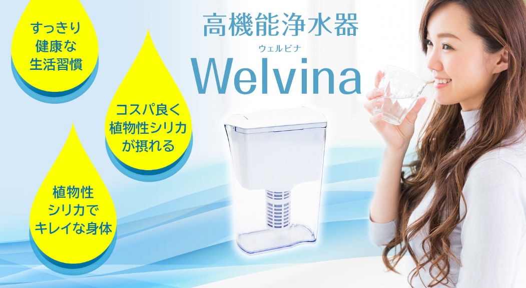 「高機能浄水器Welvina」は、浄水とシリカ補給を同時に叶える便利で高機能なアイテムです。