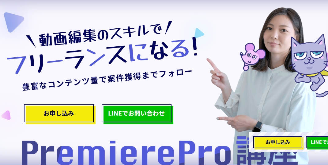 未経験者でも理解しやすいカリキュラム設計が特徴で、動画編集を仕事や副業につなげたい人を中心に注目されています。