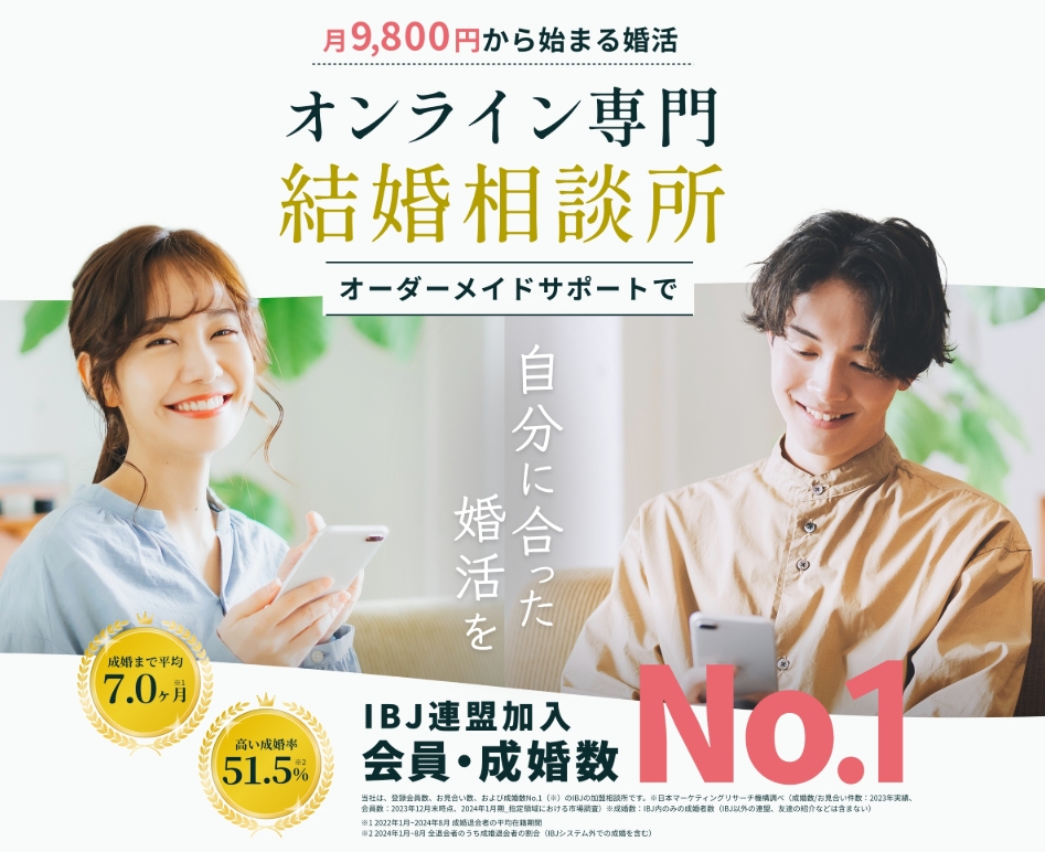 ウェルスマは、日本最大級の結婚相談所ネットワークであるIBJに加盟しているオンライン結婚相談所です。