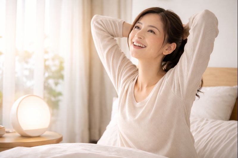 毎朝一定のタイミングで光を浴びることで、体内時計のリズムが整いやすくなります。結果として、夜の入眠がスムーズになったり、日中の眠気を感じにくくなるなど、生活全体のリズム改善が期待できます。
